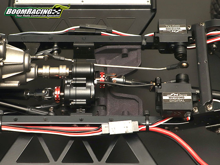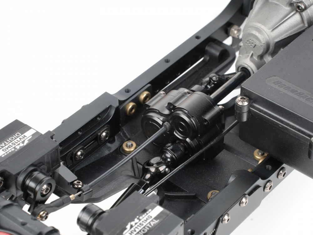Replace the stock transfer case with the SWD T-Case. Use together with the Boom Racing Mini Servo Mount Set for BRX01 (with Mini Servo) #BRLC70100KIT, or the Mini Servo Mount Set if you already have a mini servo #BRLC70100. Setup instructions are included with the Mini Servo Mount for BRX01.
