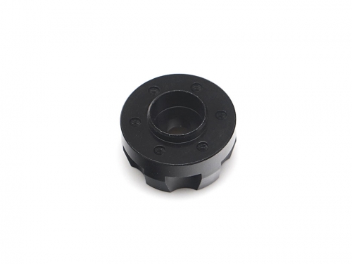 This is a hardened steel 7mm to 8mm socket nut wrench adapter. Eliminate the need for an 8mm socket nut wrench. This thin-walled 8mm (10.5mm) wrench adapter fits the Boom Racing XT6 V2 hubs. Use this if your vehicle uses M5 locknuts for the drive shafts. Features a center hole for easy torquing.