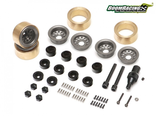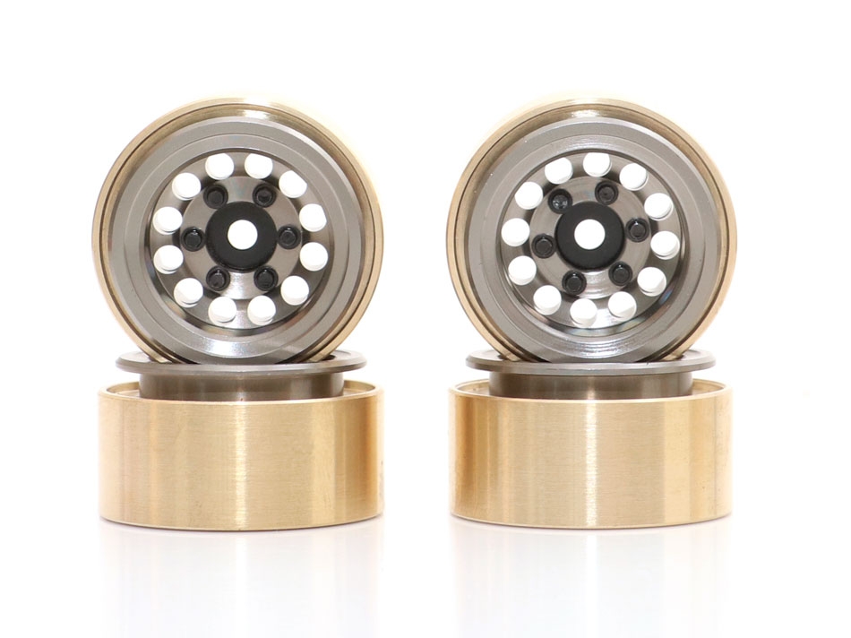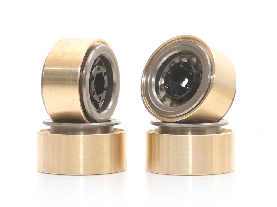 High-quality brass beadlock wheels upgrade for lowering the center of gravity, keeping your mini crawler planted on the ground