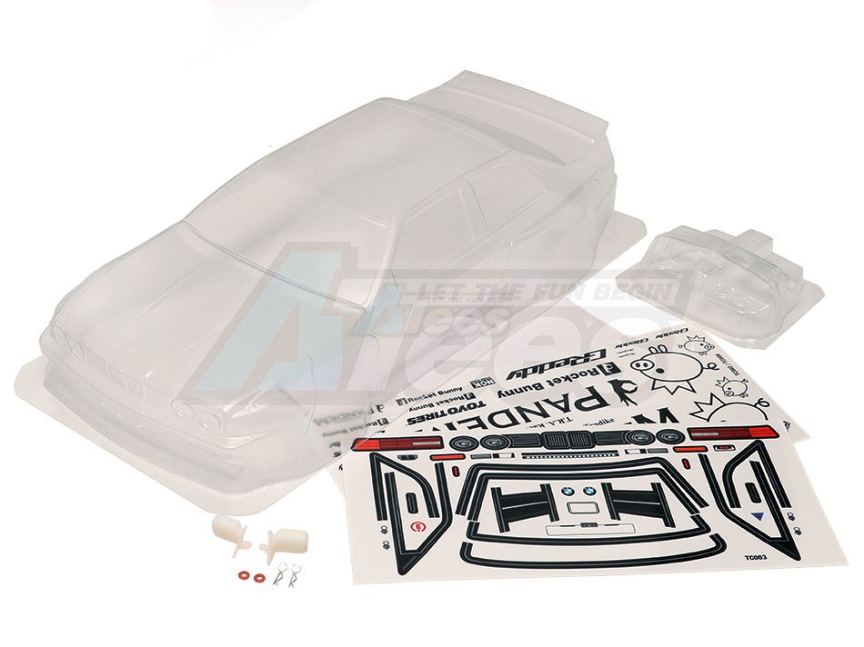 - Factory description: Team C 1/10 BMW E30 M3 Pandem Clear Lexan Body W/Rear Mirrors & Light Buckle