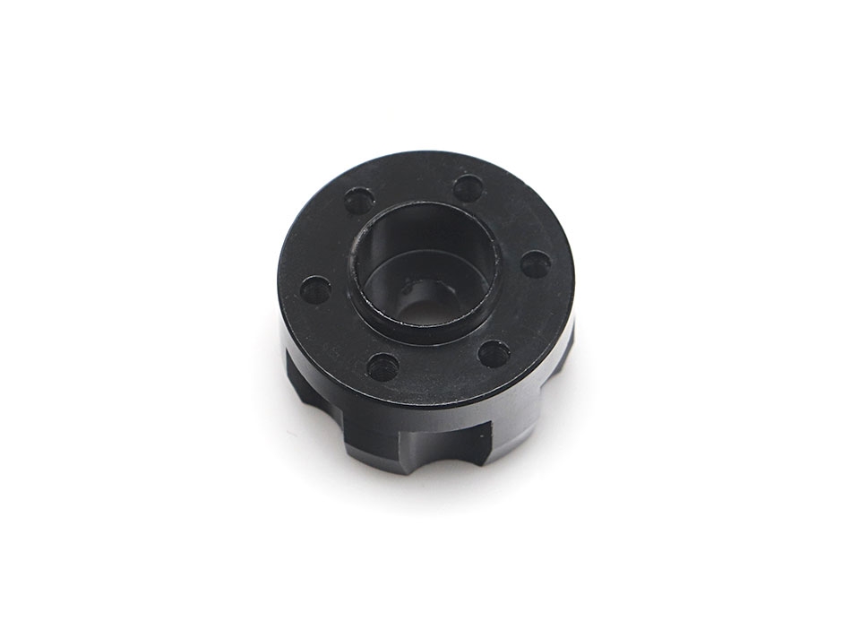 This is a hardened steel 7mm to 8mm socket nut wrench adapter. Eliminate the need for an 8mm socket nut wrench. This thin-walled 8mm (10.5mm) wrench adapter fits the Boom Racing XT6 V2 hubs. Use this if your vehicle uses M5 locknuts for the drive shafts. Features a center hole for easy torquing.