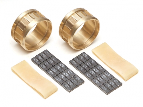 Adding weight on the wheel is an advantage in many situations for R/C crawlers. It forces the tire onto the ground and grabs the earth with the weight pushing against it. There is a significant performance improvement by lowering CG (center of gravity) once this system is installed in your tires. The leads are secured with sidewalls and lead slots, optional rubber bands are also included.The billet machined Brass Center Ring weighs 145 grams (5.11oz) each, and includes a set of Lead Weights that are 6.5 grams each, with a total of 20 pieces per wheel (40 pieces total). The Lead Weights have the Boom Racing logo molded in the center.