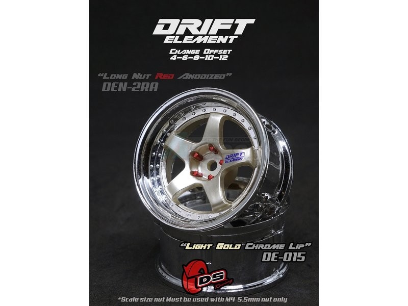 • Factory description: DS Racing Drift Element Wheel - Adj. Offset (2) / Light Gold Chrome Lip