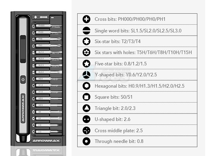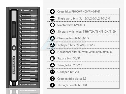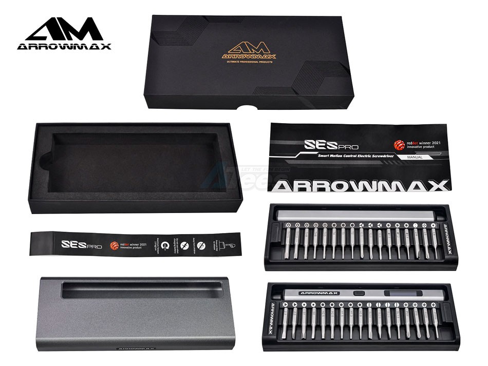 • Factory description: Arrowmax SES Pro Smart Motion Control Electric Screwdriver With Aluminium Case (34 in 1) Space Gray