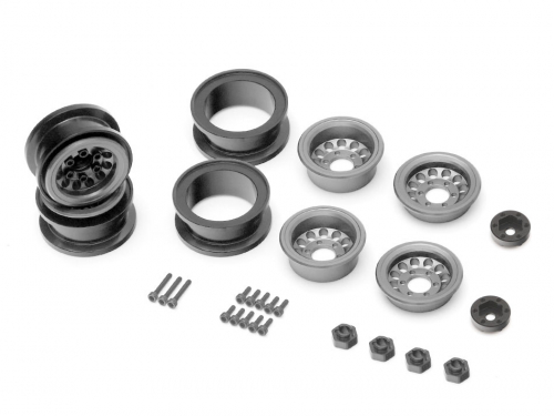 This Lite Version is made of machined billet aluminum. No matter if you are going for more performance or simply want better-looking wheels, upgrading your wheels is one of the first things you can do to your mini crawler. The major advantage for keeping the truck light is to have less rotating weight, which translates to less stress on the drivetrain. The aluminum center ring is designed to hold the foam insert in place.