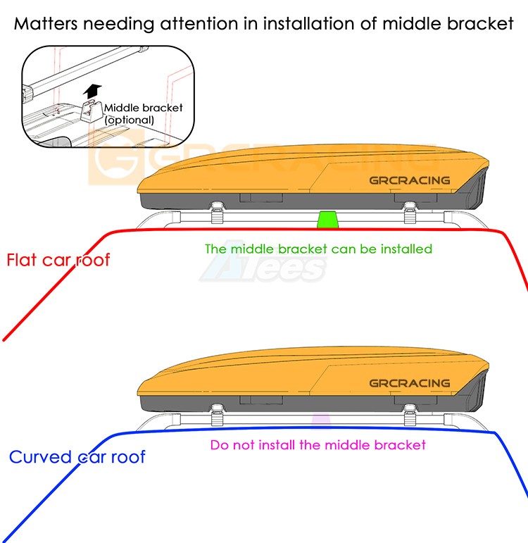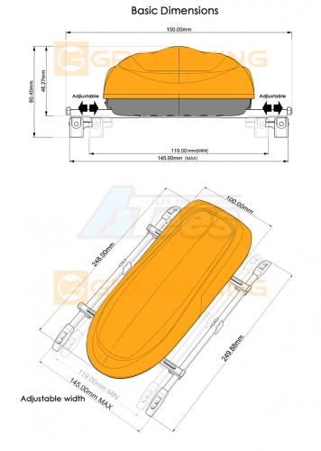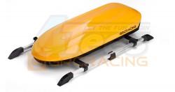- The roof luggage box adopts a streamlined design and is matched with the details of the tail diversion groove. The appearance of the product has a unique personality. The cover can be opened, and the interior space is ample, which can easily accommodate a 6400mAh 3S battery in the format. Roof brackets and crossbars are made of carbon-mixed nylon plastic, with aluminum alloy rods on both sides, which are light and tough, ensuring strength and reducing the weight of the roof as much as possible. The mounting width of the bracket is adjustable and the length is adjustable, which can adapt to a variety of roof sizes.