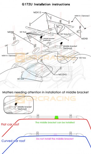 - 1. When installing this kit, you need to drill a 2mm hole in the roof.