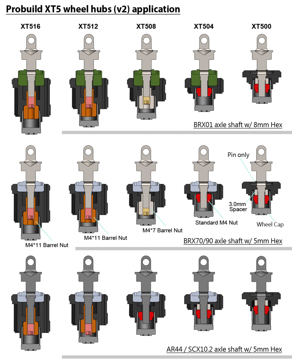 • This is a pair XT5 V2 hub adapter designed for Boom Racing 5-Lug beadlock wheels. Made out of CNC aluminum.