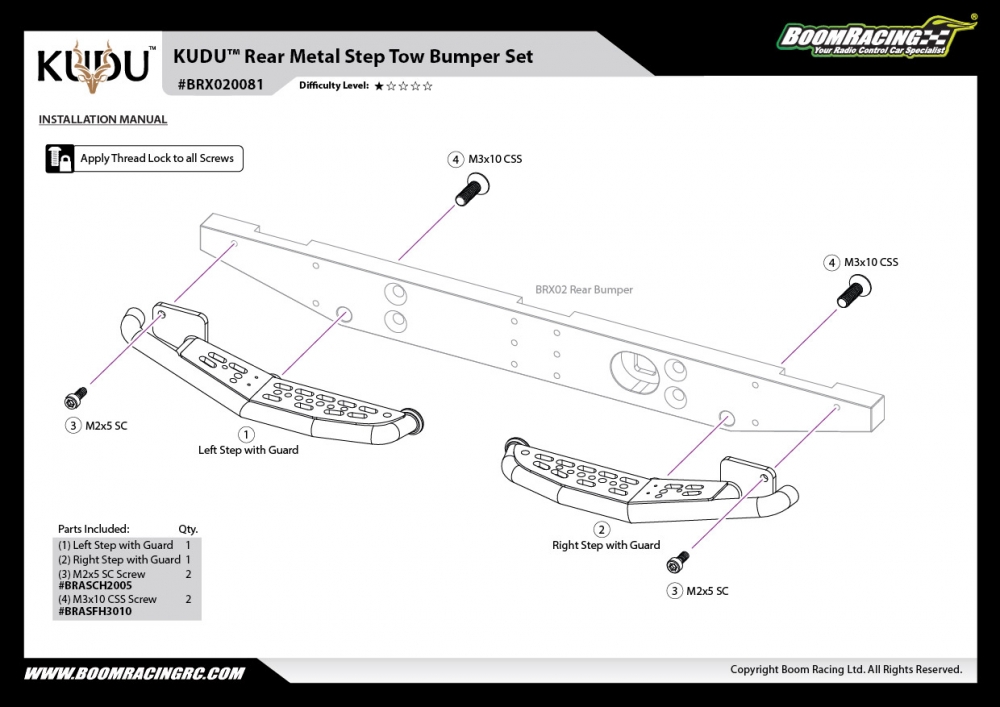 - Factory description: Boom Racing BRX02 KUDU™ Metal Bowler Rear Bumper