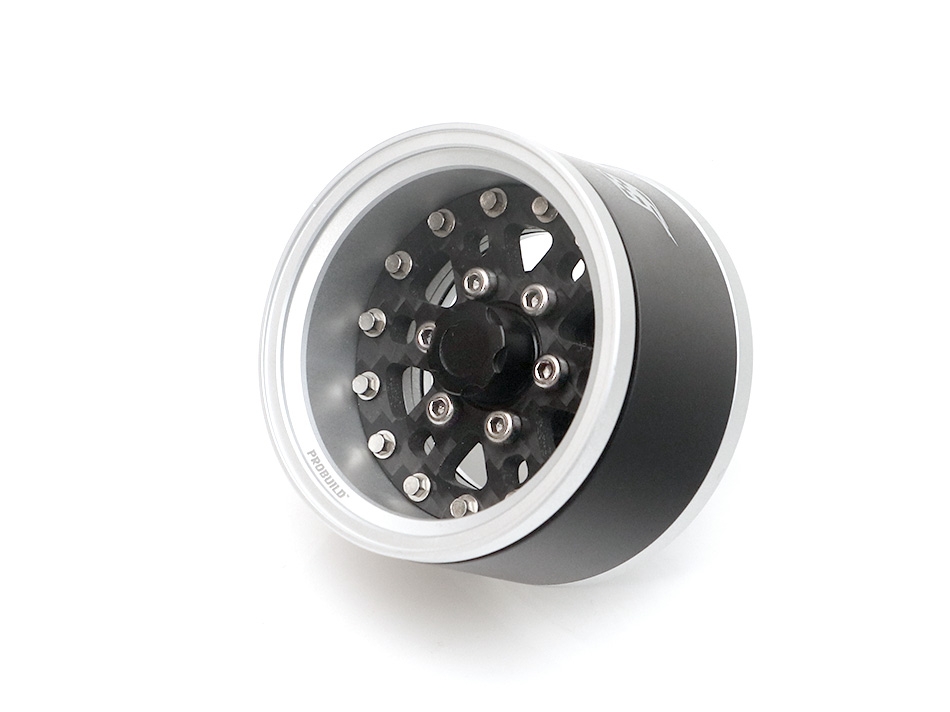 Boom Racing ProBuild™ 1.55" CFH6 Adjustable Offset Aluminum Beadlock Wheels (2) Flat Silver/Carbon Fiber
