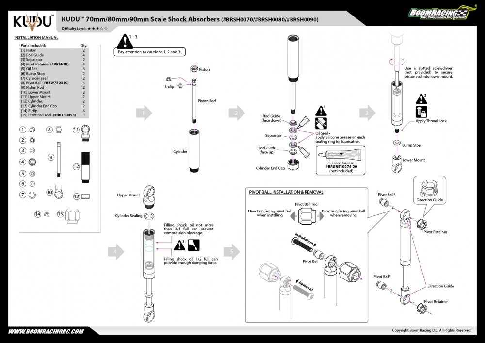 This is a pair of KUDU 90mm scale shock absorbers. Every aspect of these shocks has been optimized to deliver scale performance and precision adjustability.