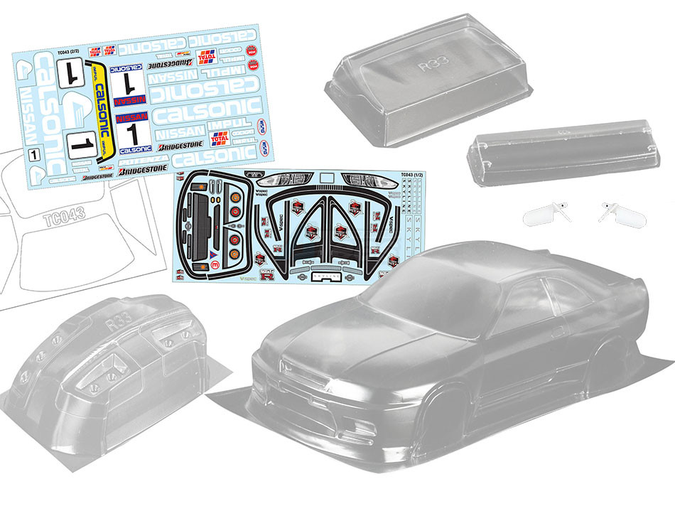 • Factory description: Team C 1/10 Nissan GTR R33 (190MM) w/ Calsonic Sticker