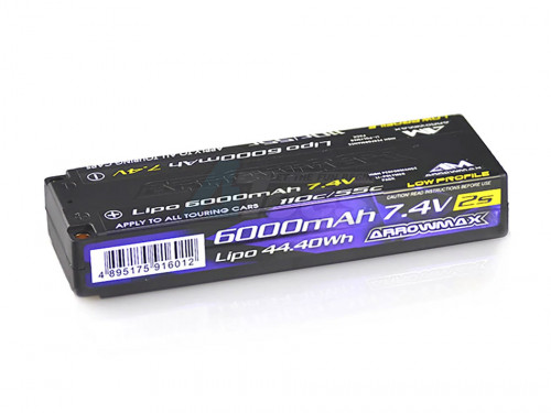 • Factory description: Arrowmax AM Lipo 6000mAh 2S TC Low Profile - 7.4V 55C Continuous 110C Burst