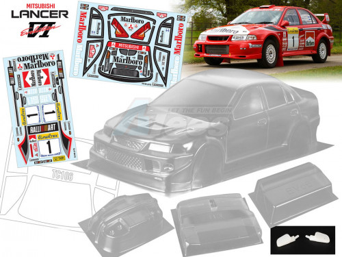 • Factory description: Team C 1/10 Mitsubishi Lancer Evolution 6 (190mm) Body w/1 Sticker