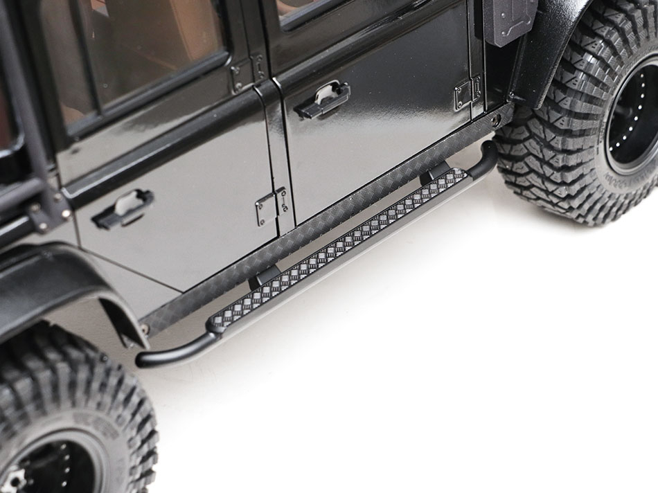 These tubular side steps protect the body and chassis from trail objects, and work as rock sliders for better performance. They are made of lightweight aluminum to keep the CG low.