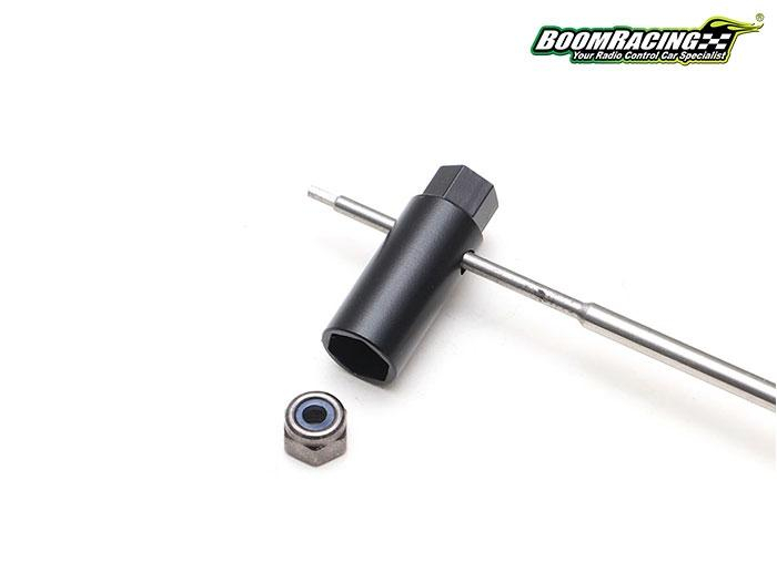 This is a hardened steel 7mm to 8mm socket nut wrench adapter. Eliminate the need for an 8mm socket nut wrench. This thin-walled 8mm (10.5mm) wrench adapter fits the Boom Racing XT6 V2 hubs. Use this if your vehicle uses M5 locknuts for the drive shafts. Features a center hole for easy torquing.