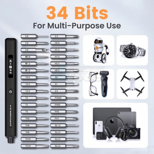 • Factory description: Arrowmax SES Pro Smart Motion Control Electric Screwdriver With Aluminium Case (34 in 1) Black