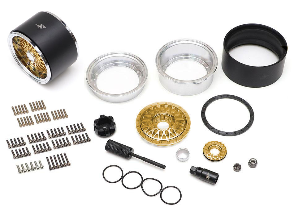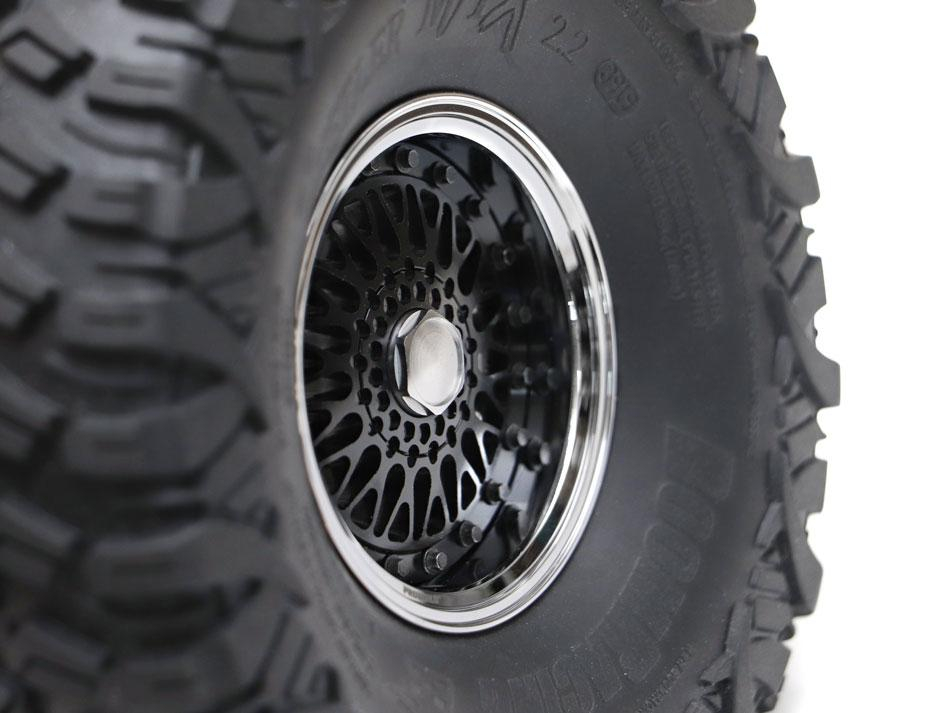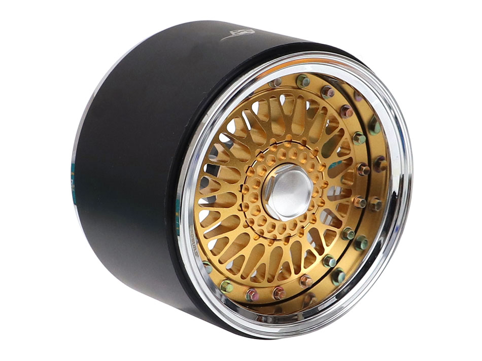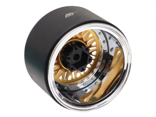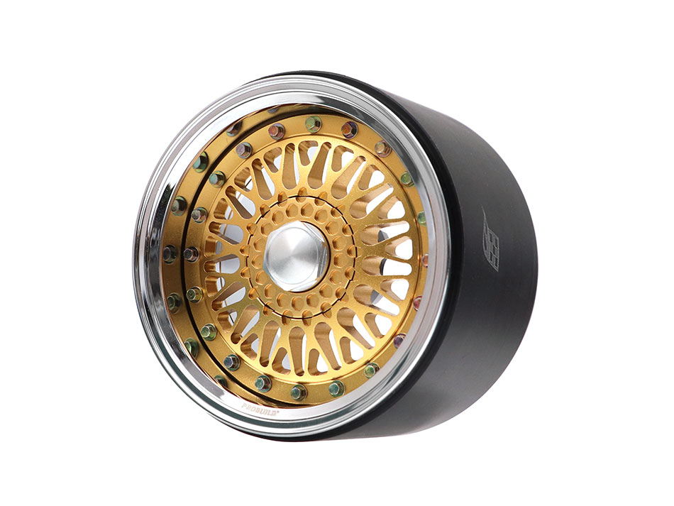 Factory description: Boom Racing ProBuild™ 2.2" Extra Wide R01 Mesh Adjustable Offset Aluminum Beadlock Wheels (2) Chrome/Gold