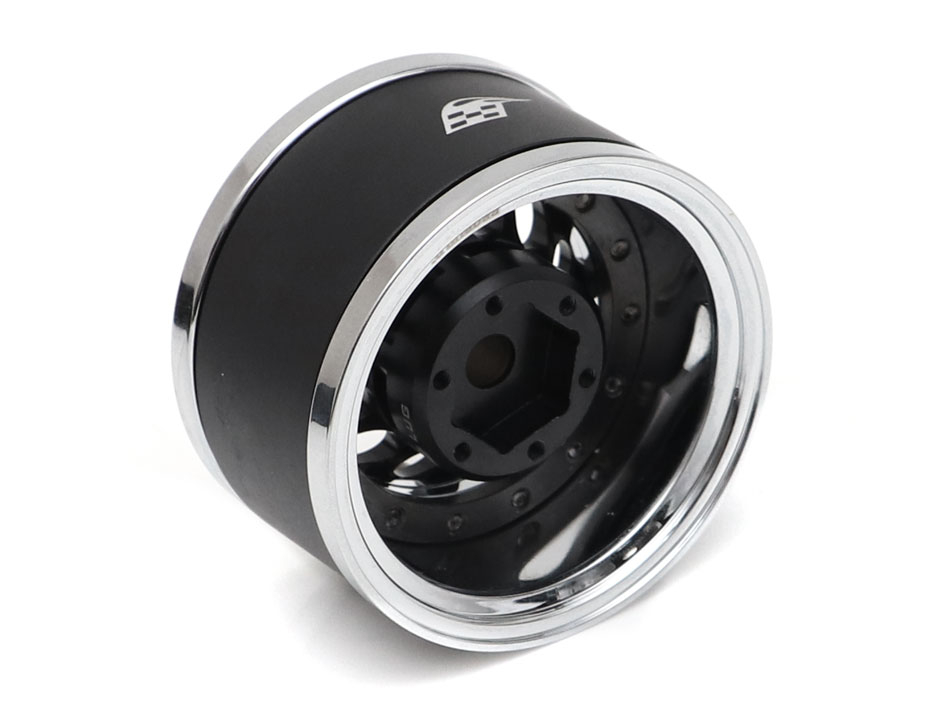 Boom Racing ProBuild™ 1.55" R12 6-Lug Adjustable Offset Aluminum Beadlock Wheels w/ Dome Center Cap (2) Chrome/Black
