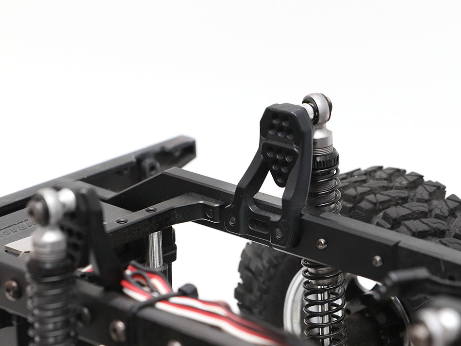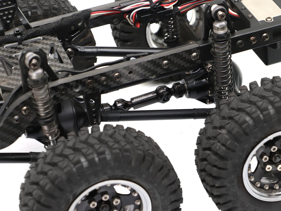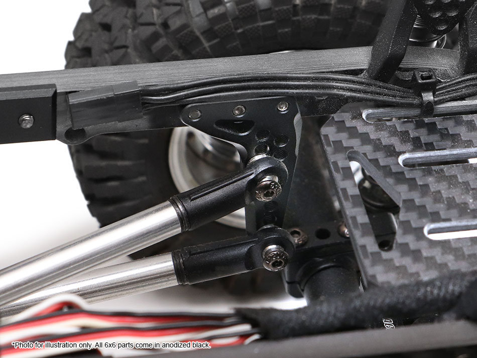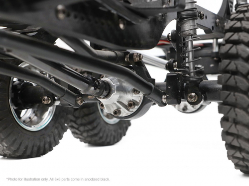 This 6x6 Conversion Kit features an assembled BRX90 Pass-Thru PHAT Axle. This axle replaces the original BRX02 rear axle as the pass-through axle in the middle. The chassis rails are extended with two aluminum rail extensions. Two aluminum shock towers are included for the two additional KUDU™ 90mm coil-over shocks. Two new aluminum lower link mounts connects the four rear lower aluminum links.