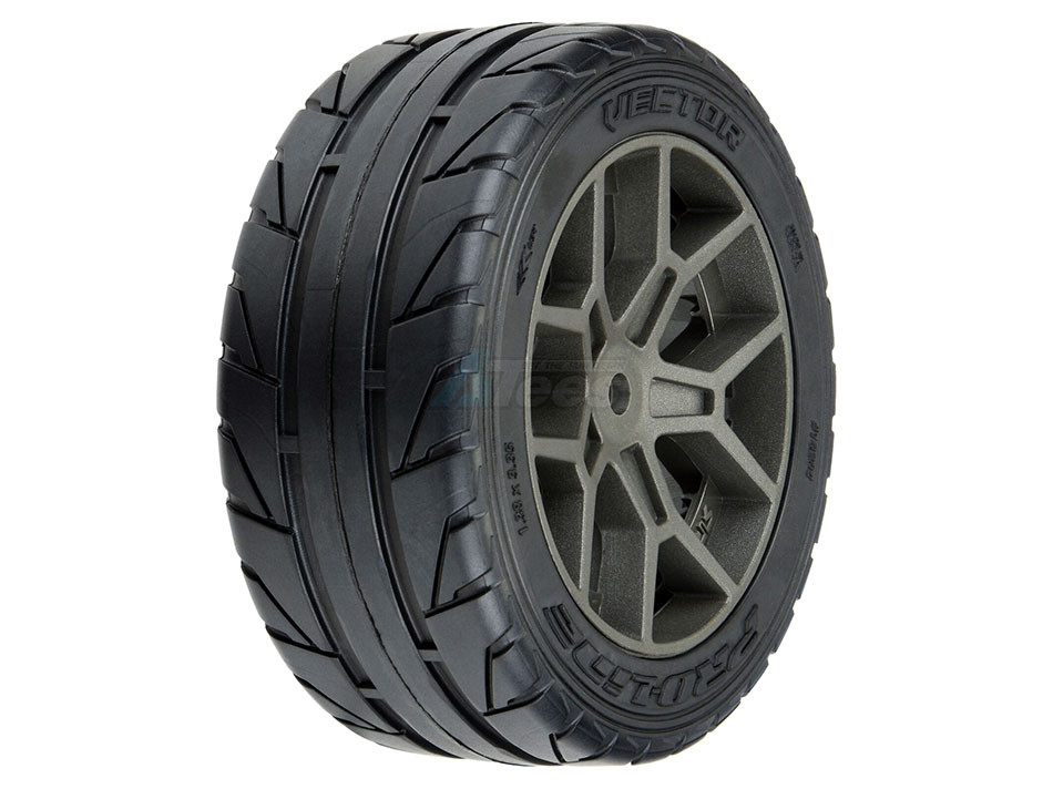 • Factory description: Pro-Line Racing 1/8 Vector S3 F/R 35/85 2.4 Inch BELTED MTD 14mm Gray