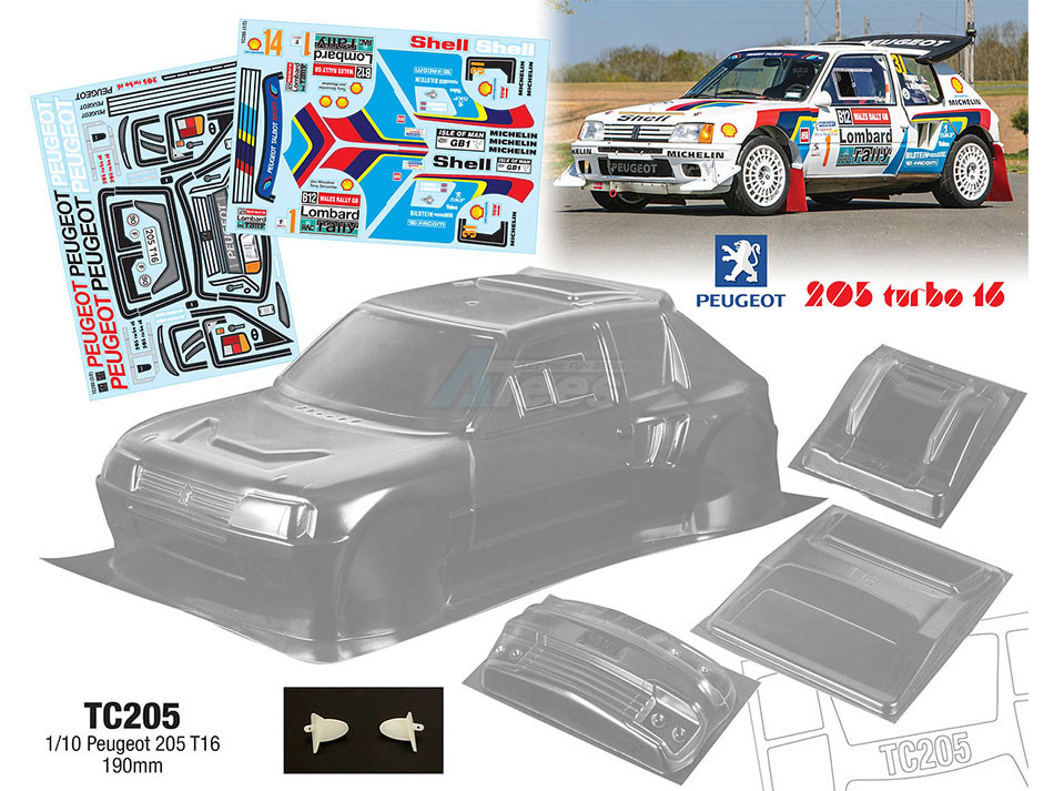 • Factory description: Team C 1/10 Peugeot 205 T16 190mm w/ Shell Sticker