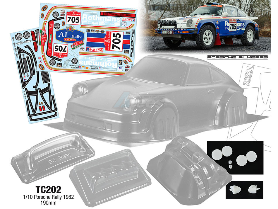 • Factory description: Team C 1/10 Porsche Rally 1982, 190mm w/ Rothmans Sticker