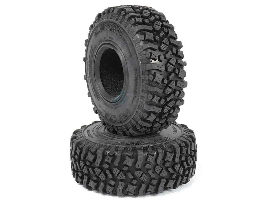 The 1.7 Rockers are miniaturized versions of the Champion Pit Bull Rocker LT 1:1 tires. With a size of 4.19 x 1.40-1.7 it has our multi-varied tread design increases forward/reverse and lateral traction with serious biting across the entire footprint. These Rocker tires have many features designed to increase traction and control while enhancing stability and a contact patch featuring internally ribbed sidewalls for extra support. Excellent lateral bite--incredible stickiness and exceptional traction. And did we mention scale details? The sidewall on the new 1.7 Rocker has one of the most intricately detailed sidewalls available for Scale R/C!
