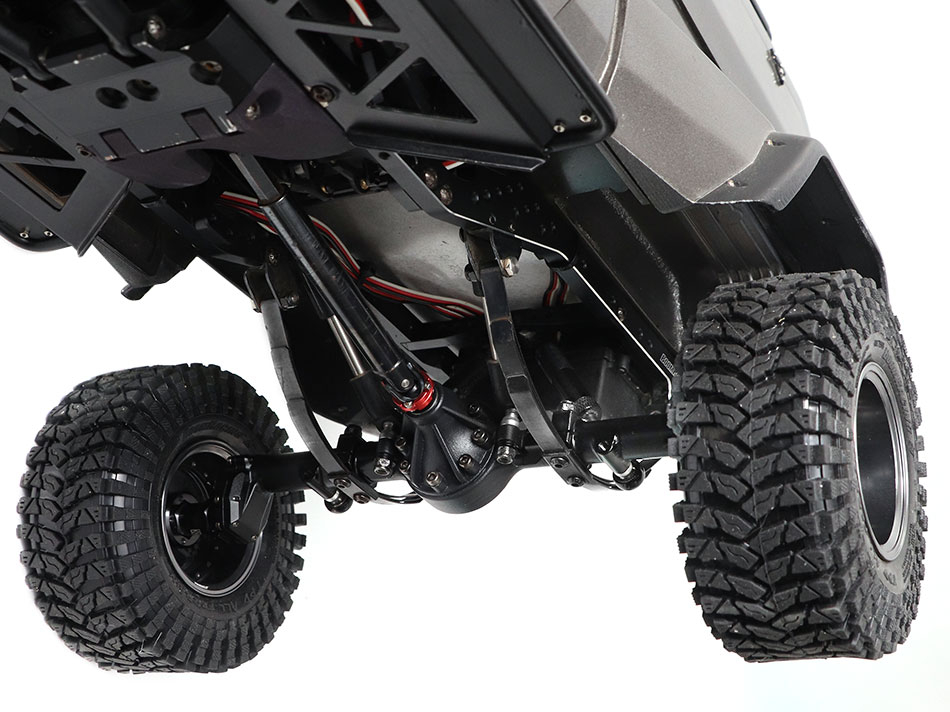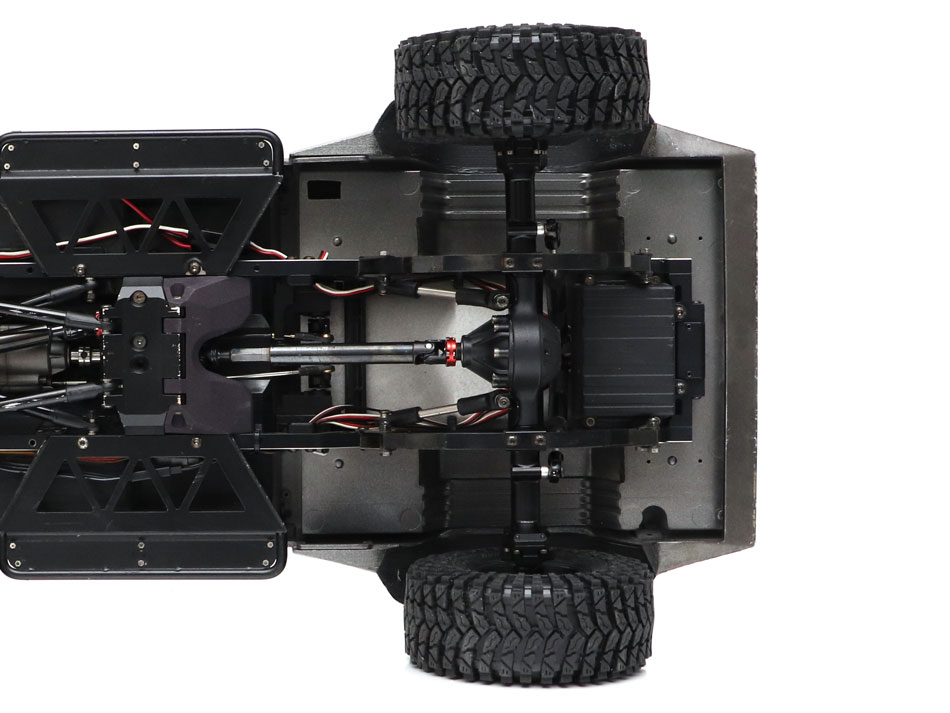 Packed with many desirable features; a heavy-weighted cast alloy axle housing for low CG, reversible axle bevel gear positions, leaf spring over and under axle (optional), detachable aluminum CNC truss, adjustable caster angle, and more.