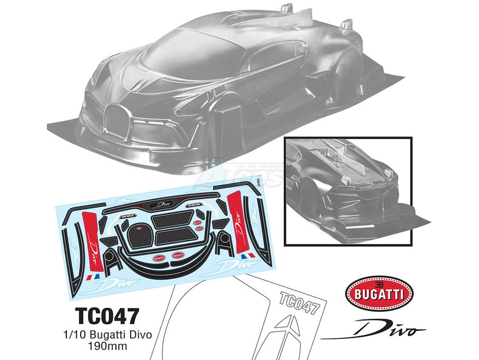 • Factory description: Team C 1/10 Bugatti Divo (190MM)