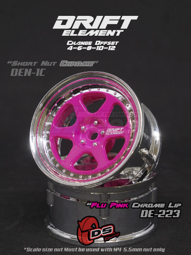 • Factory description: DS Racing Drift Element Wheel II - Adj. Offset (2) / Pink Face Chrome Lip 2pcs
