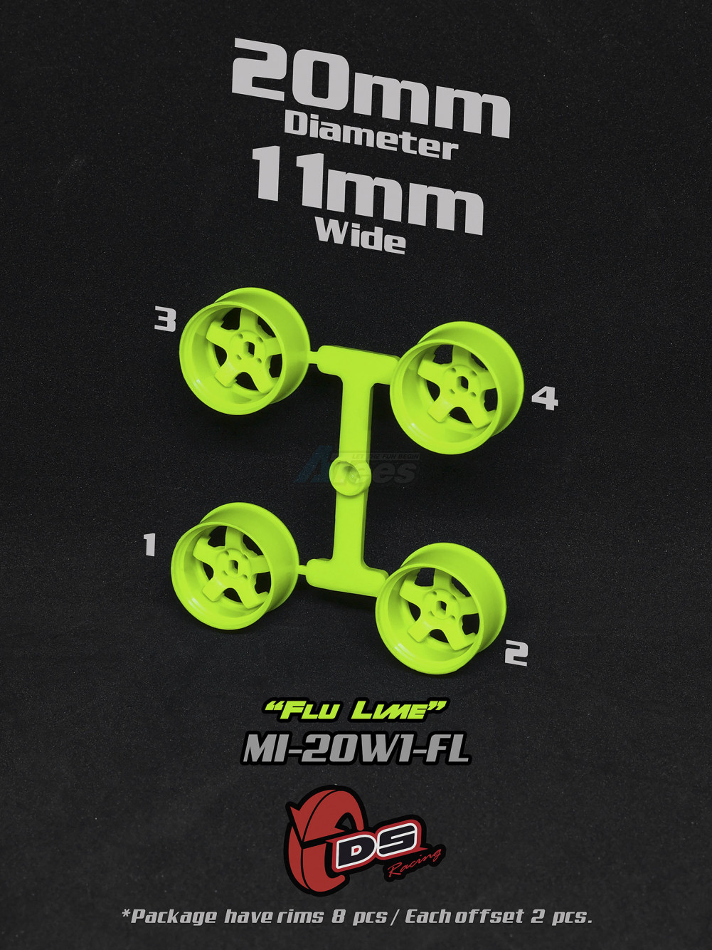 • Factory description: DS Racing Mini-Z Rim Flu Lime Color 11mm Wide