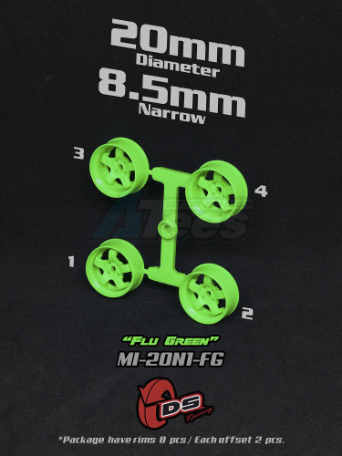 All DS Racing wheels are precision made and feature durable high-quality plastic materials. Package includes 8 Wheel Rims total and features 4 pairs of different offset sizes to help get that perfect fit. *NOTE: Wheels fit any AWD Kyosho Mini-Z 1:28 or similar RC cars with oval wheel shafts; i.e. Kyosho MA020, MA030, Wltoys, Atomic DRZ, MiniQ, etc.