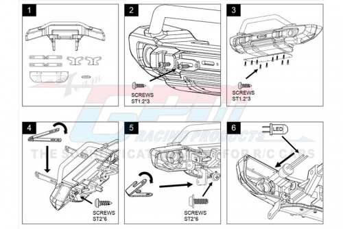 Nylon Front Bumper With Light (97074-1/97054-1) Black by GPM Racing