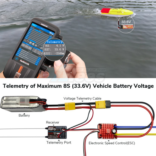 Telemetry: Real-time built-in telemetry of the model battery voltage, RSSI, and receiver voltage