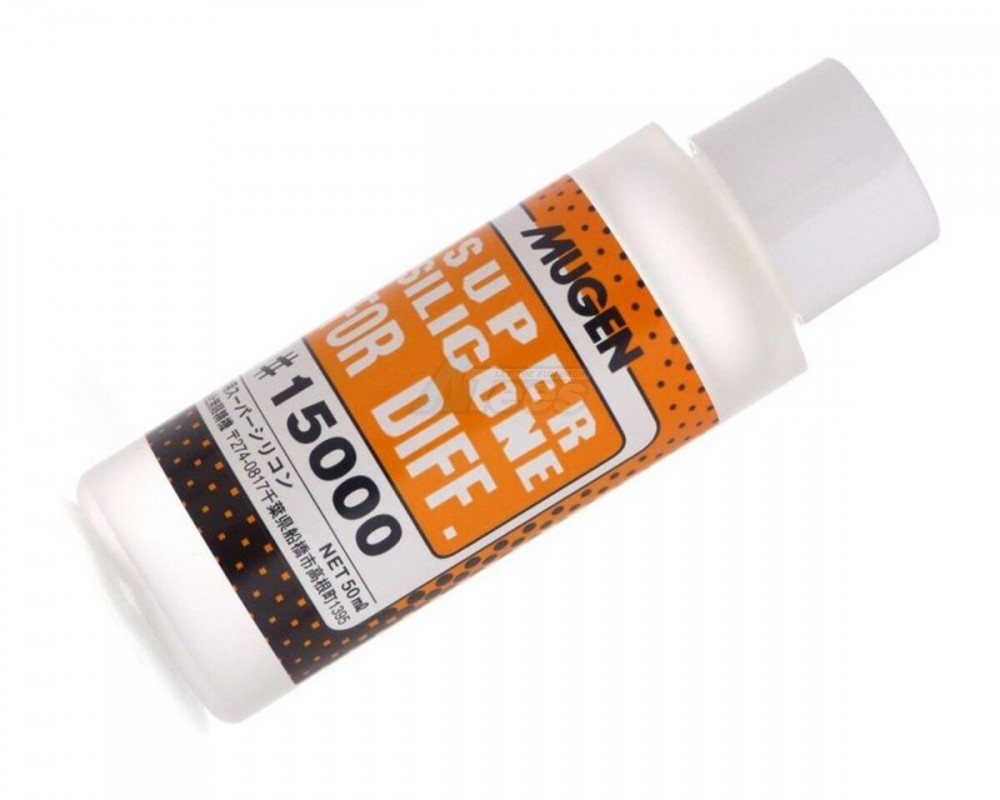 • Mugen Super Silicone 15,000 CST diff fluid formulated in Japan with high-grade silicones. The bottle has a small pour spout with a screw on top for safe traveling. The bottle contains 50ml (1.7 oz).