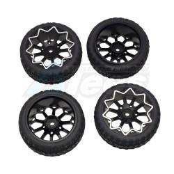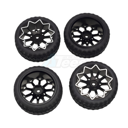 Aluminium Alloy Sun-Flower Style Drifting Wheel Tire Set for 1/10 On Road Car Black by Hobby Details