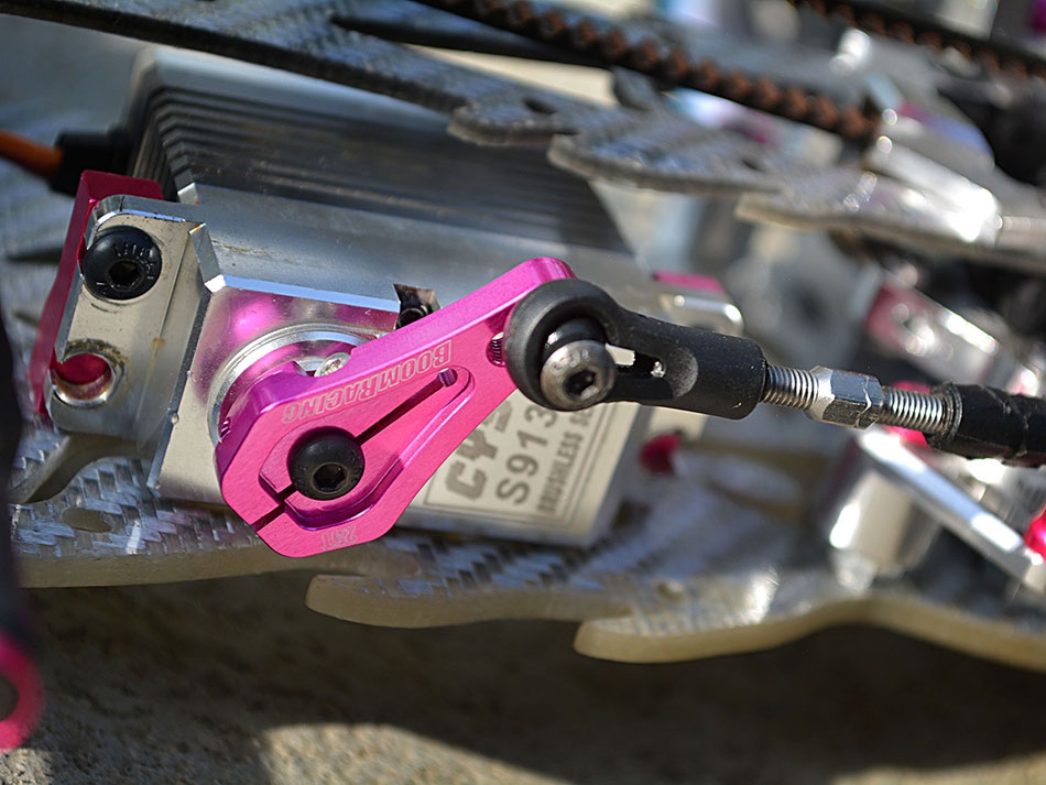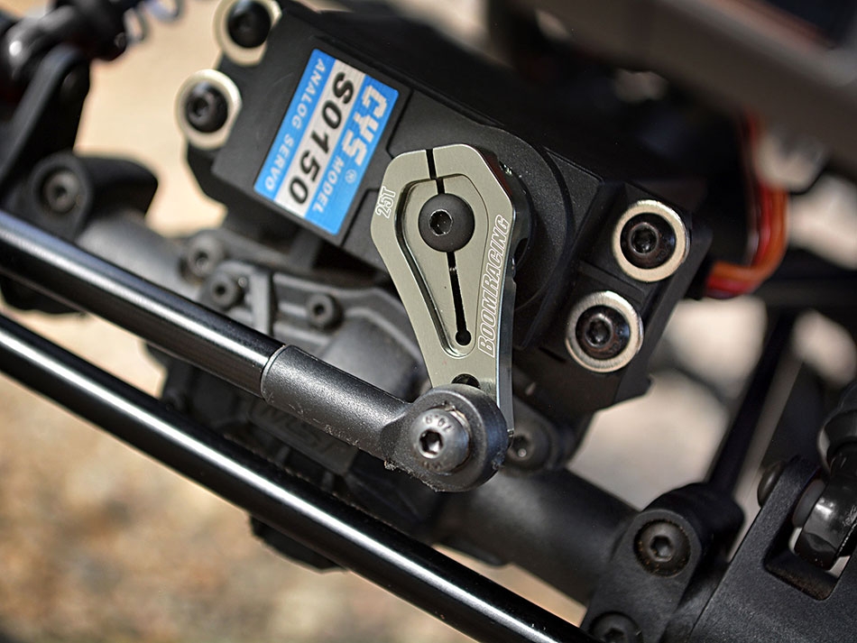 - Aluminum low profile servo horn/arm secured by two bolts.