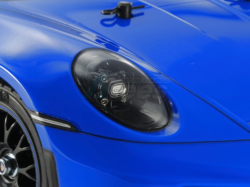 • The lightweight, durable polycarbonate body authentically captures the powerful form of the Porsche 911 GT3 (992) with separate polycarbonate rear wing and front light cases.