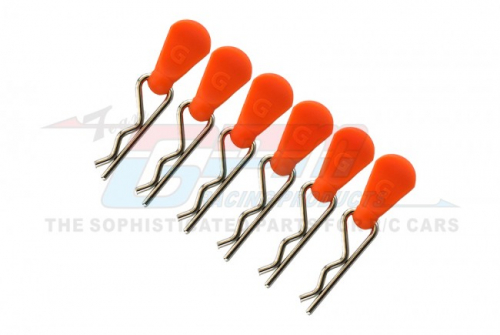 GPM Racing Body Clips + Silicone Mount For 1/5 To 1/8 Models -6Pc Set Orange
