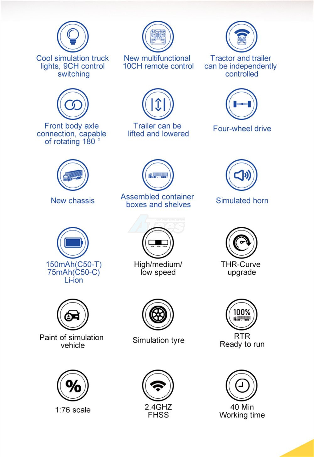 - Factory description: Turbo Racing 1:76 C50 COMBO Mini RC Trailer Full Set