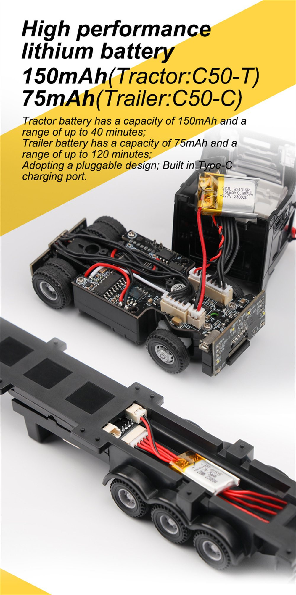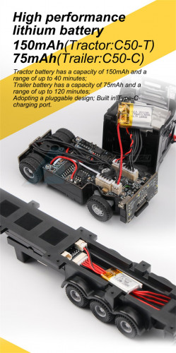 - Battery for the Tractor(C50-T):3.7V 150mAh Lipo battery (included)