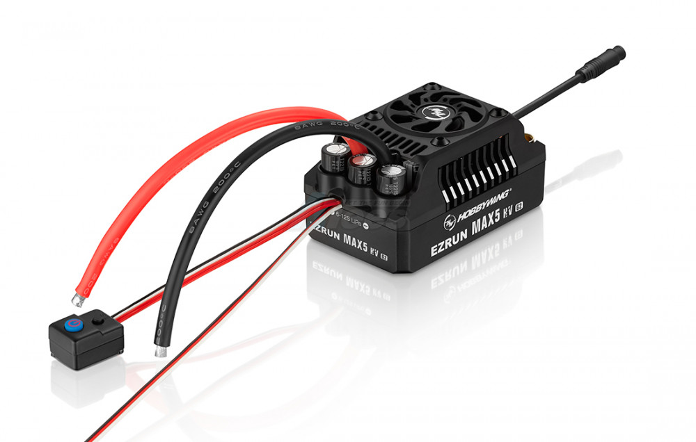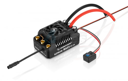 The Hobbywing EZRun MAX5 G2 Waterproof Brushless ESC is an ESC capable of handling 12S power, specifically designed for 1/5 scale vehicles. Offering the ultimate power upgrade, the MAX5 is well-suited for popular 1/5 scale models like on-road cars, buggies, and truggies from various brands. The ESC delivers robust, consistent power output, ensuring excellent performance across different applications, including aggressive acceleration, high-speed straight-line runs, jumps, low-speed maneuvers, and more.
