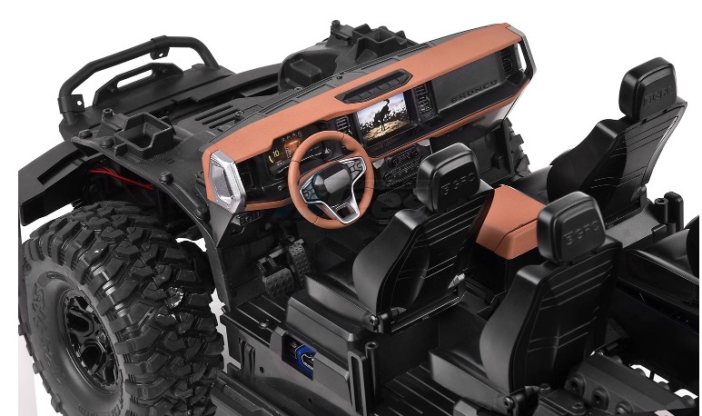- The kit is made to match the real car's interior details, ensuring an accurate representation. It's optimized for the TRX-4 new Bronco car shell. Despite limited space, the seat design allows room for a puppet's legs, avoiding any modifications during entry. The seat backrest is adjustable, and there's a central armrest kit. The front seat backrest is also adjustable with movable parts.