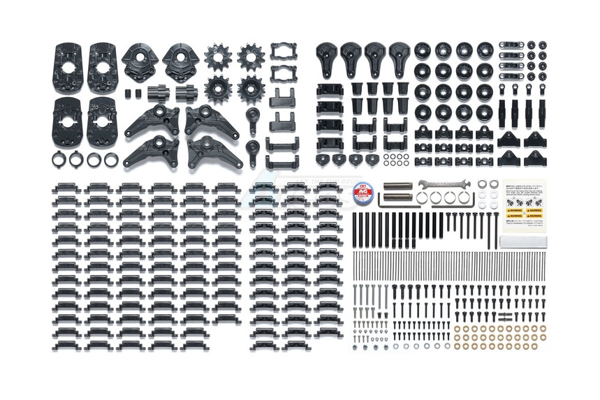 • These 3-sided track units can be used in place of the wheels on various Tamiya chassis platforms.