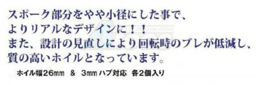 - By making the spokes slightly smaller in diameter, the design is more realistic! Additionally, by revising the design, wobbling during rotation has been reduced, resulting in a high-quality wheel.