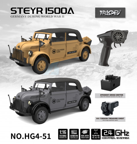 - Factory description: TRASPED 1/18 STEYR Command Vehicle RTR w/LED Light & Engine Sound Module ARTR
