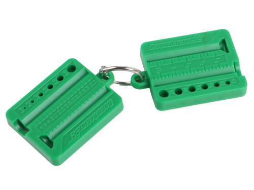 • Easily organize and measure metric and US standard sized screws and bolts with this convenient Screw Measuring Tool Guide tool. It includes both metric and imperial (US standard) guides and comes with a keychain for portability.