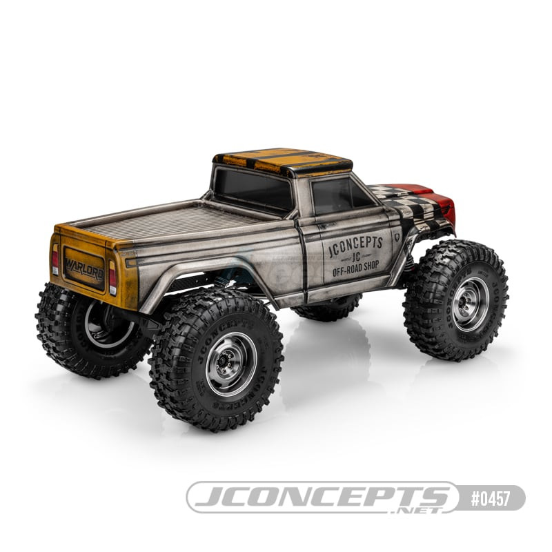 - JConcepts continues to build crawler body options with the addition of the Warlord designed for 12.3” wheelbase vehicles. The Warlord has tucked front and rear fenders to allow clearance for an assortment of tire options while also giving the body shell a very competition inspired look. The new body combines elements from vintage vehicles while carrying some new ruggedness and attitude which JConcepts can provide. In addition, the Warlord includes a roof visor which can be installed separately to give the roof a top and windshield overhang if the user visualizes it this way.
