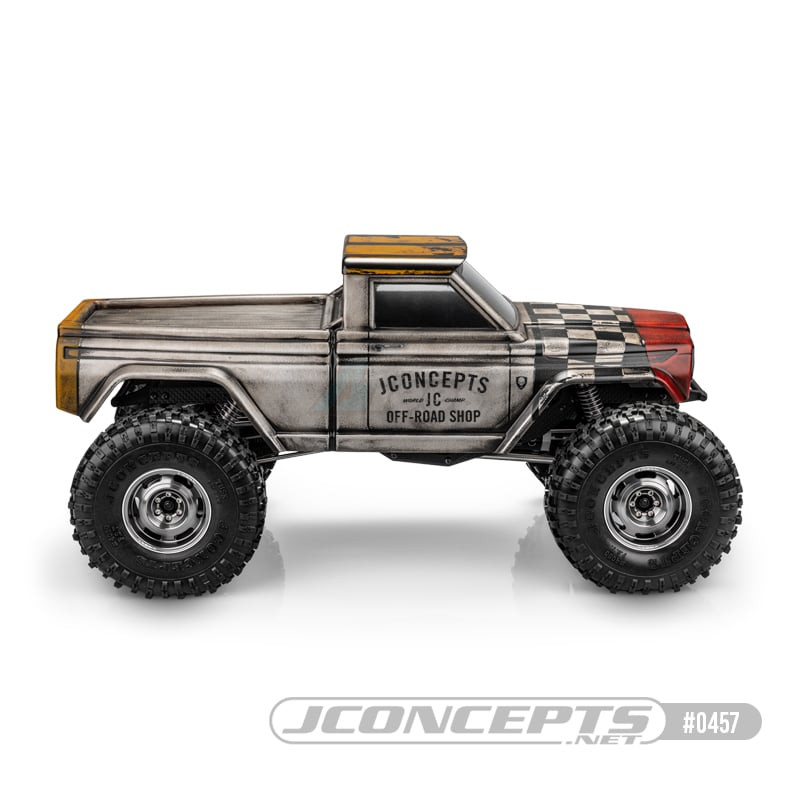 The JConcepts philosophy on a tucked body is to make it look like a truck, add allowances for increased articulation, minimal overhang and to accommodate competition sized tires. The single cab body brings back the memories of bench seating, lap seat beats, with AM/FM radio turned up to the max. Vintage JConcepts body shells arrive clear in the package, have preinstalled overspray film, include versatile decal sheet, and window masks.